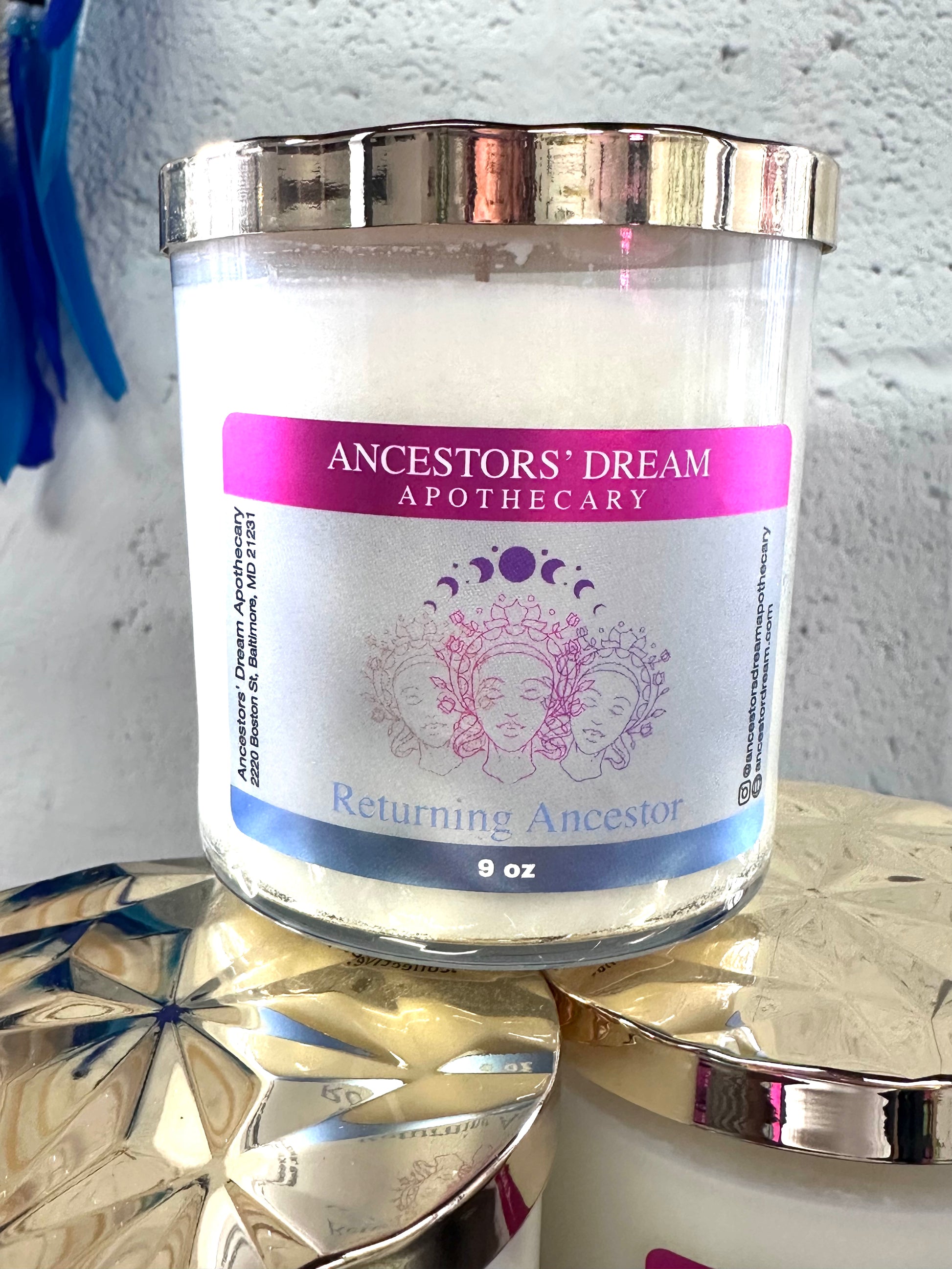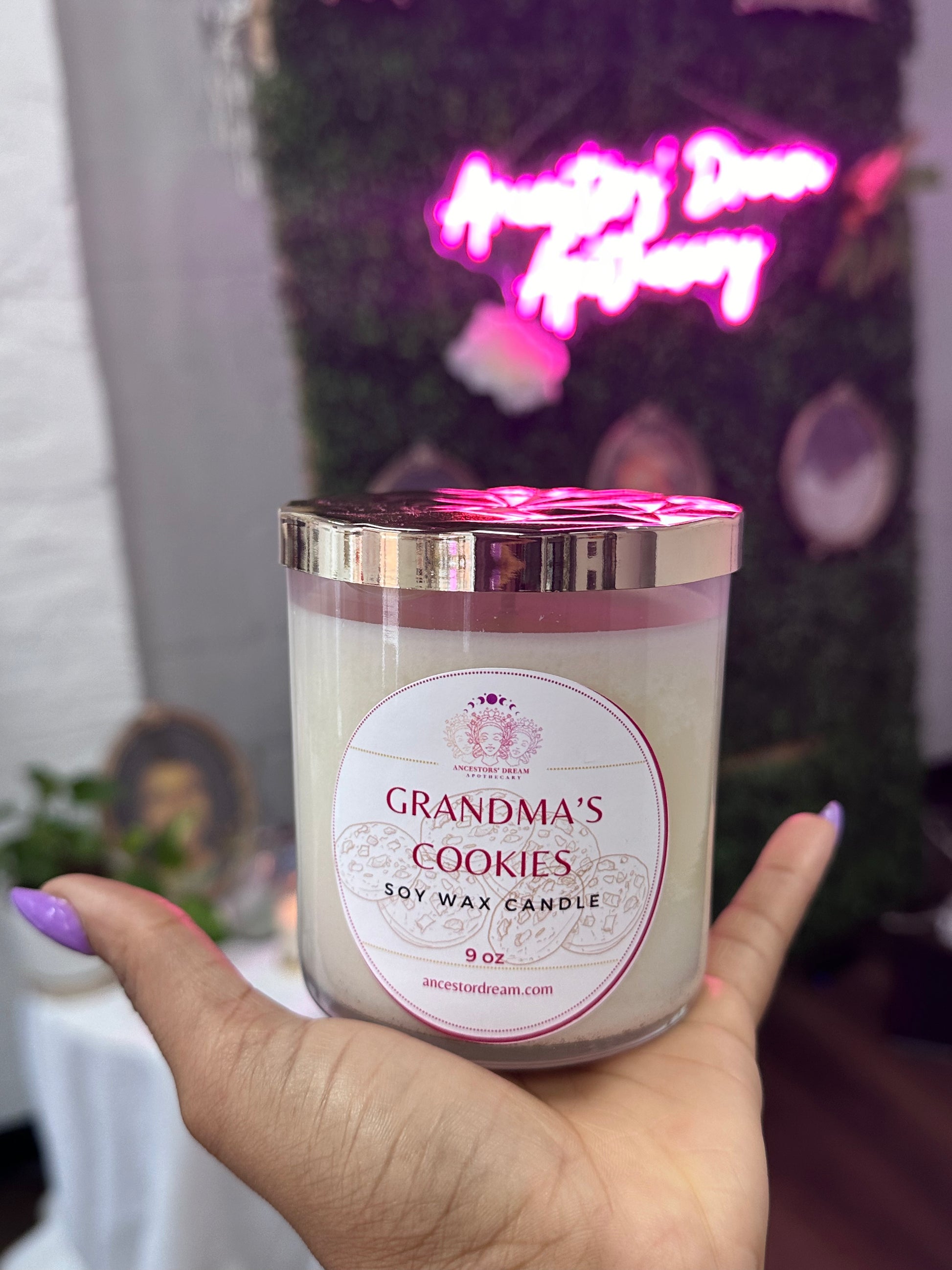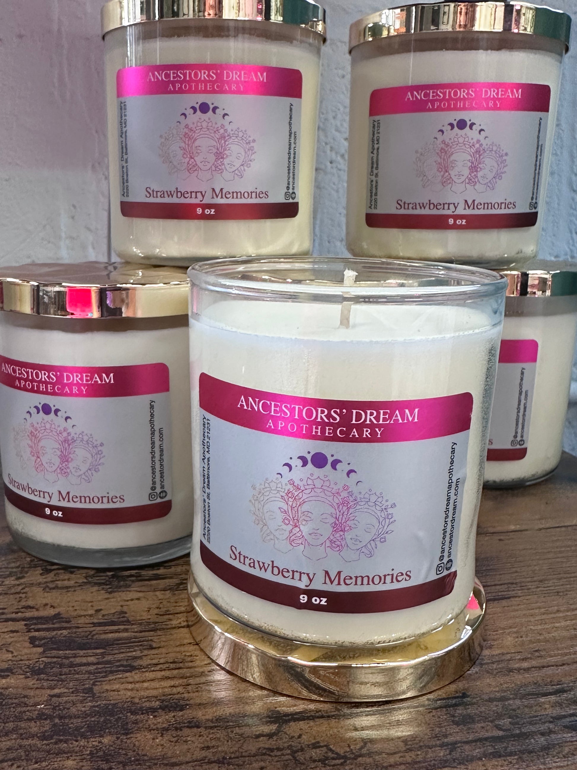 Indulge in the aromatic experience of our Ancestors' Dream Candles. Made with soy wax and infused with rich scents, each candle is a tribute to cherished childhood memories. Fill your space with warmth and nostalgia with the scents Big Mama's House (light fruity clean scent), Returning Ancestor (reminiscent of baby powder), Strawberry Memories (reminiscent of strawberries and cream candies) and Grandma's Cookies (reminiscent of warm sugar cookies).
