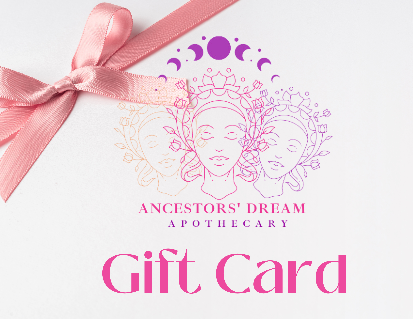 Give the gift of choice with our Ancestors' Dream Apothecary gift card! Perfect for any occasion, it allows your loved ones to select from our wide range of natural remedies and wellness products. Whether they're into herbal teas, spiritual tools or skincare products, our gift card is a thoughtful way to show you care, while giving them the freedom to pick exactly what they want. It's a convenient and versatile gift for anyone who appreciates the art of natural healing and wellness.