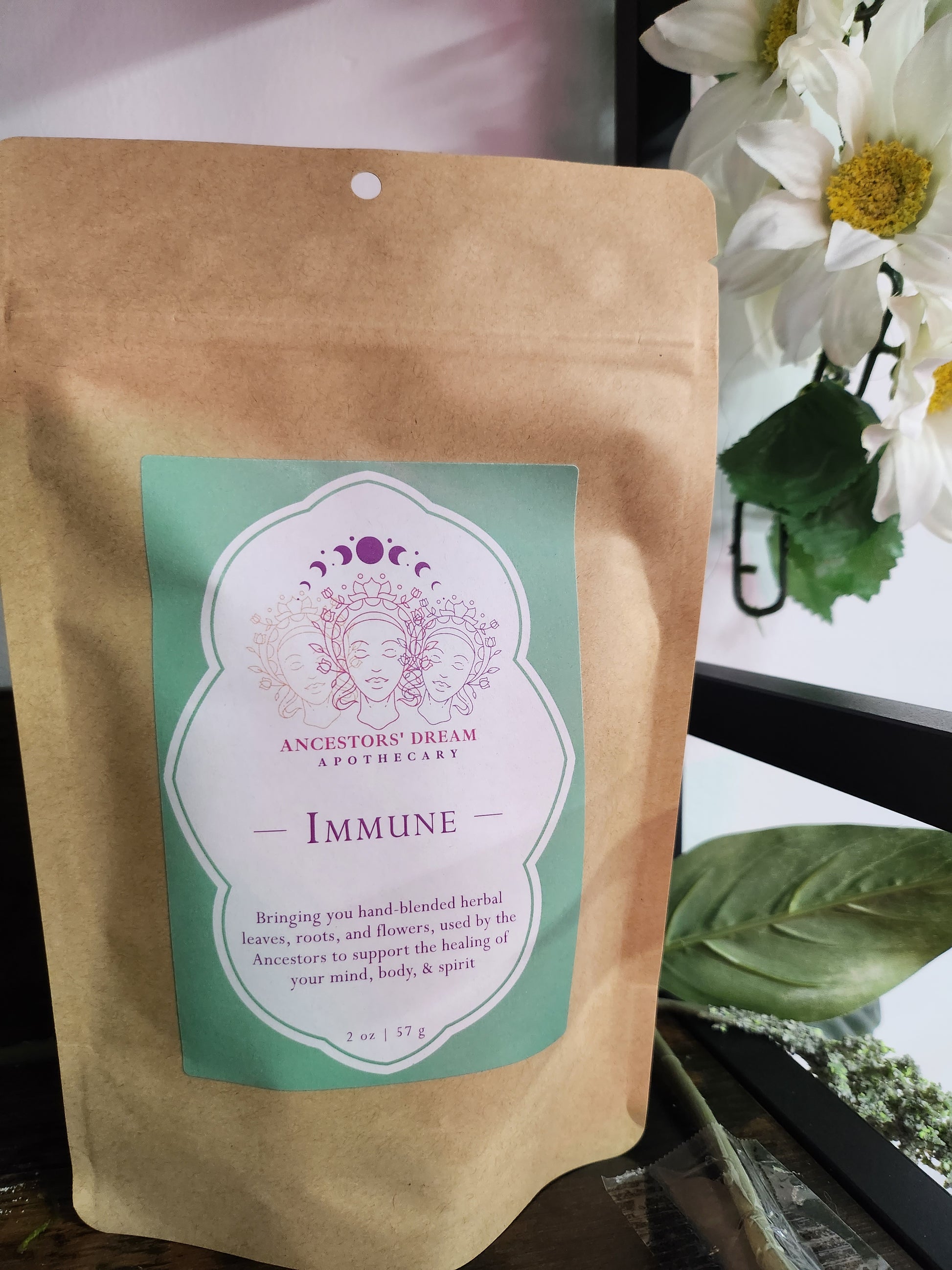 Immune Herbal Tea enhances infection-fighting immune cells and increases the production of immune compounds, such as interferon. Interferon protects the body from damage caused by free radicals and helps disarm viruses, preventing them from taking over healthy cells. Immune Herbal Tea is one of our favorite blends, not only for its amazing illness prevention abilities but for its wonderfully earthy flavors of Ashwaganda Root and Reishi Mushroom.