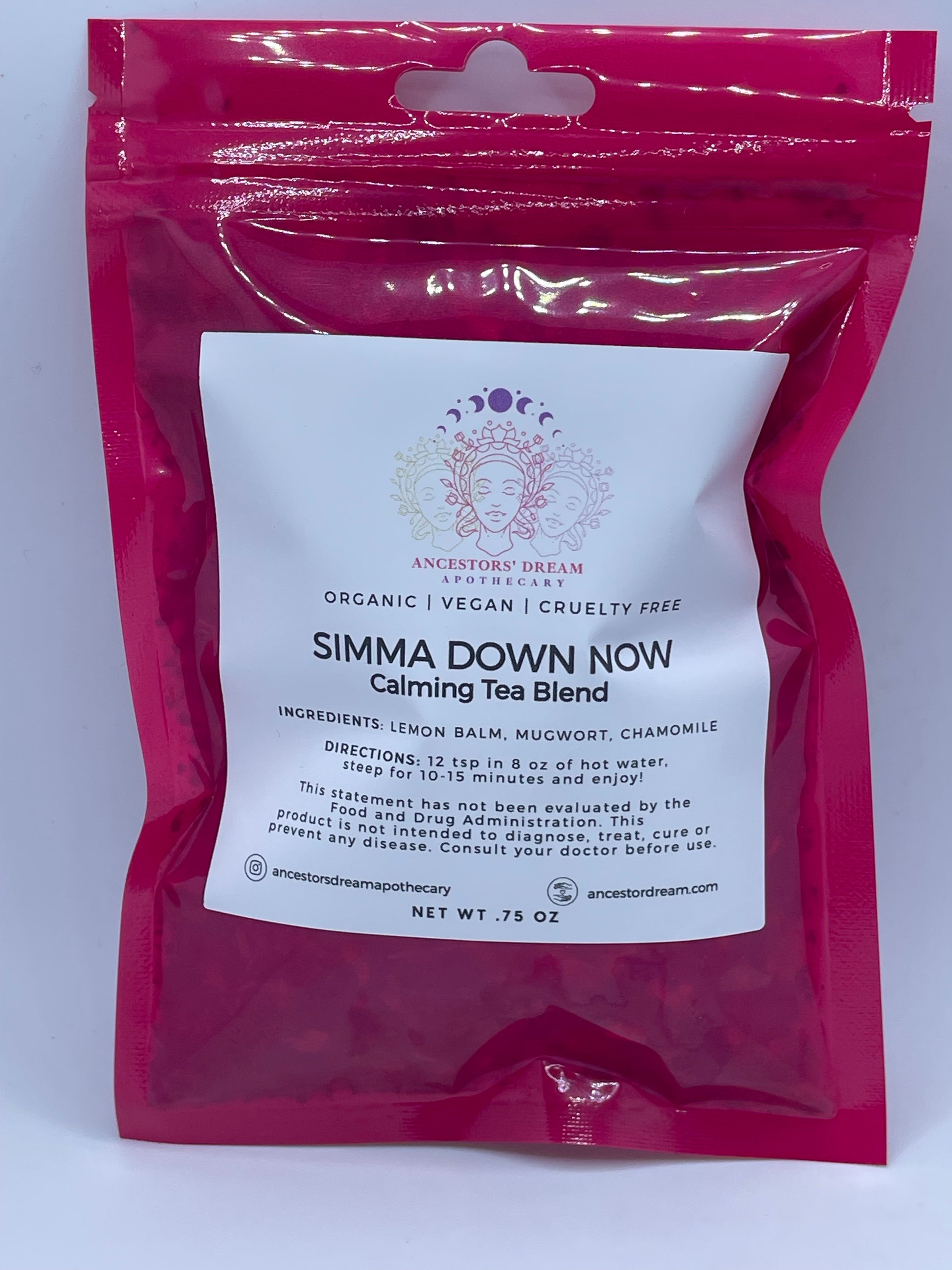 Whether you're seeking respite after a long day or simply wish to create a peaceful oasis in your daily routine, Simma Down Now Calming Tea Blend is the perfect solution. Savor its delicate aroma as you prepare for a restful night's sleep or indulge in a rejuvenating break during the day.